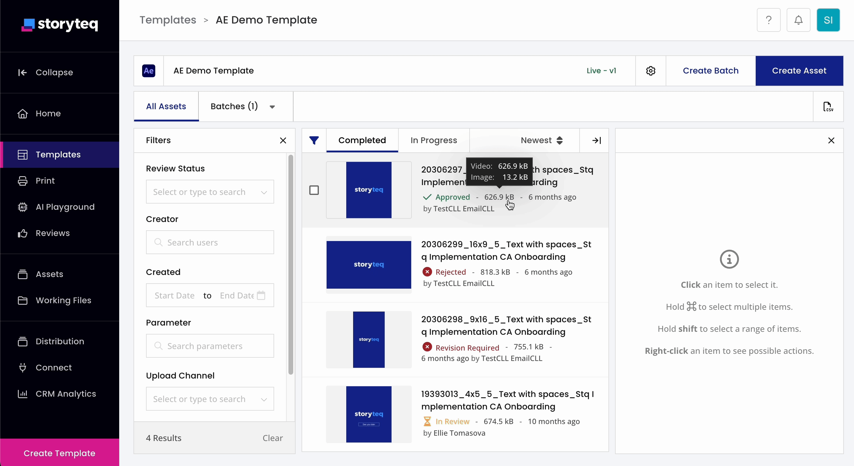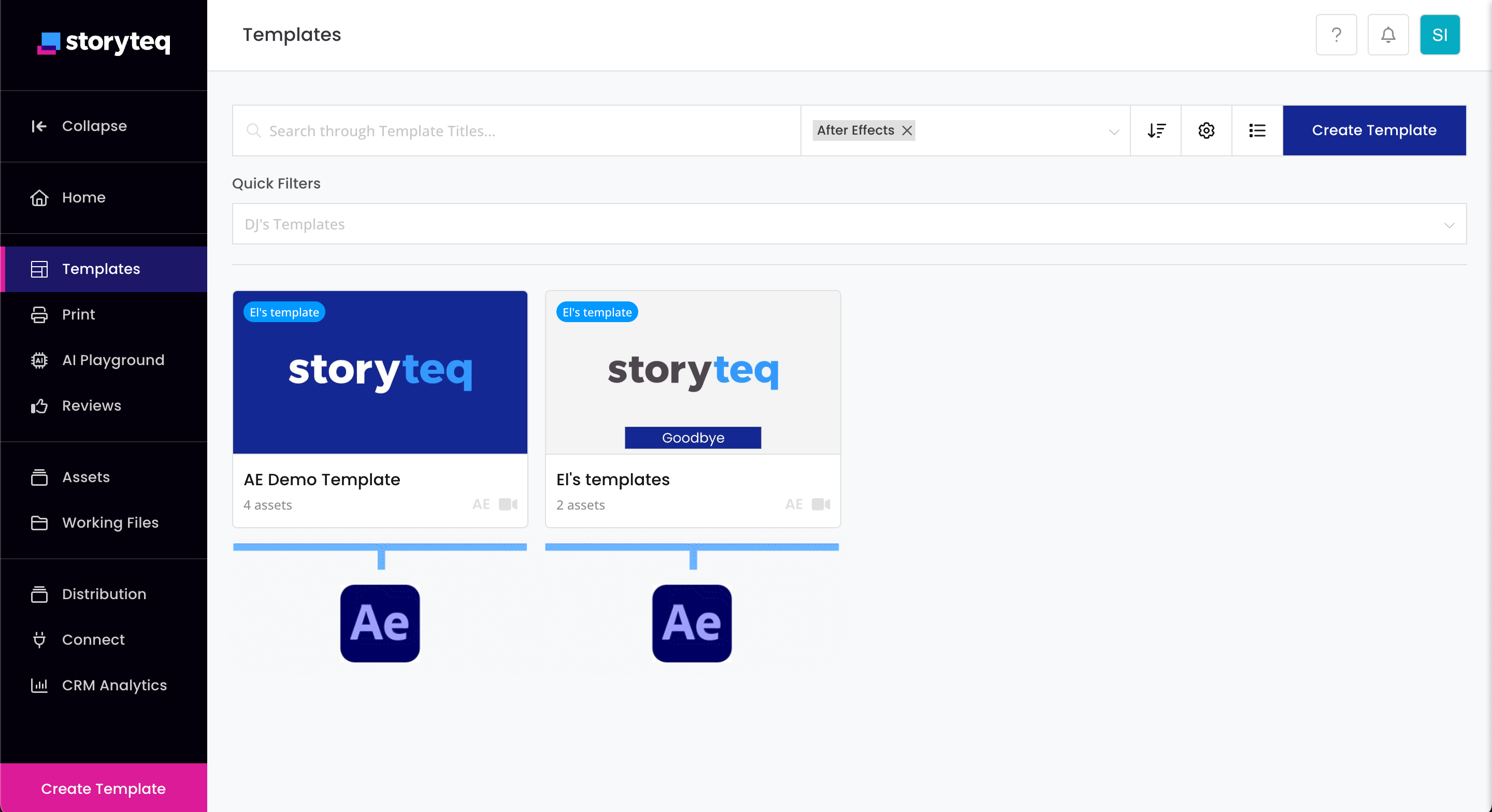 From your After Effects project, the Storyteq team will create a template on the Storyteq platform. Watch the following image to see how it looks:
